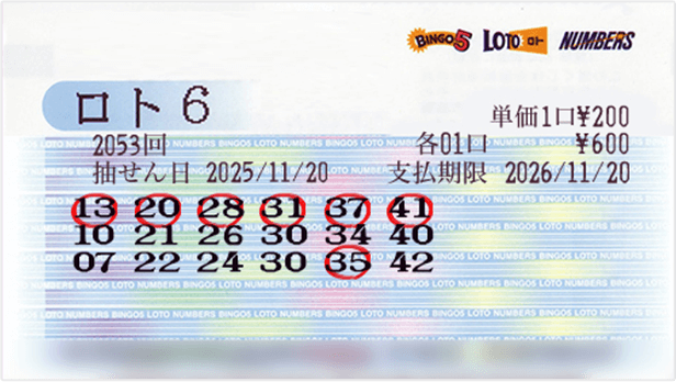 2025年11月20日 ロト6 抽選